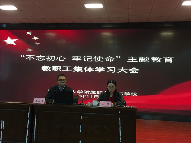 为进一步增强党员党性观念,提高党员政治素养,使党员牢固树立共产主义理想信念,海大职校全体教职工于11月15日下午13时在阶梯教室开展“红色文化与上海城市精神”主题党课活动。此次党课由海大职校党总支书记刘征主持,特邀上海社会科学院文学研究所副所长兼中共上海市委党史研究室特约研究员朱鸿召为我校全体教职工进行精彩授课。