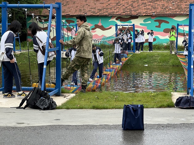 同学们心中树立明确目标,或是端起镭射枪,或是举起弓箭,进入瞄准状态,注意力高度集中,内心迅速冷静下来,做到真正的心无旁骛。而水上项目是最为紧张的,因为稍有不慎就会从掉桥上掉落,同学们过桥期间需要做到胆大心细。当同伴们完成任务时,大家的脸上满是激动与自豪。通过体验军事拓展项目,同学们增强了国防观念和国家安全意识,更深切地感受到了我们今天的幸福生活来之不易。
