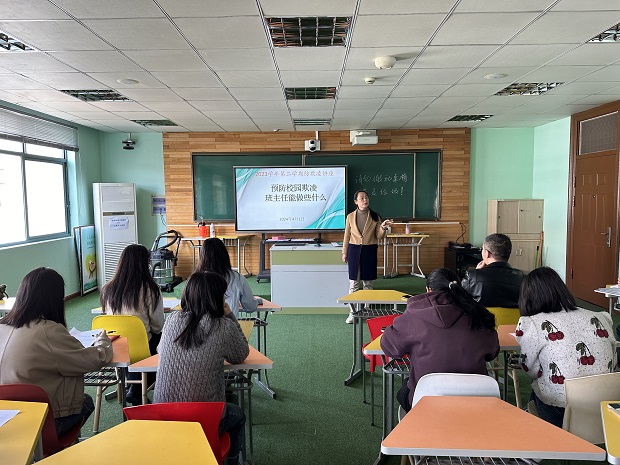 4月1日,马海俐副校长组织开展了以“预防校园欺凌 班主任能做些什么”为主题的防欺凌专题讲座,全体班主任深入学习法律法规和政策文件,提升防欺凌意识和责任意识,提高处理学生欺凌与暴力事件的专业能力,做到依法依规、合理有效的处理危机事件。