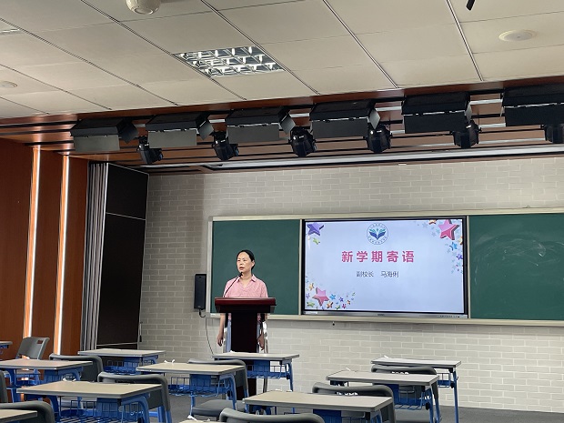 我校心理教师谢冉首先带来一场以“新学期 “心”动力”为题的心理微型讲座。谢老师详细讲述了面对新学期、新环境,如何进行情绪的调节、人际关系的处理,进而坚持养成好习惯,为学习之路增添强劲动力。随后,马海俐副校长作了新学期寄语,以满腔的热情诚挚地欢迎每一位学生的到来。马海俐副校长强调:作为新时代的青年,要学习领悟党的创新理论,要坚定不移听党话、跟党走,做遵守规矩、努力学习、勤练技能、身心健康的学生。接着,政教主任王珏老师就现阶段学校学生管理相关工作做了介绍,强调了行为规范、请假制度、手机使用规范等内容,激励同学们从小事做起,从遵守学校的行为规范做起,开启青春新起点。最后,政教副主任向文君老师通过详细的讲解和视频演示,清晰展示卫生打扫的范围以及规范方式,强调注重班级卫生,旨在创造一个整洁、卫生、安全的学习环境!