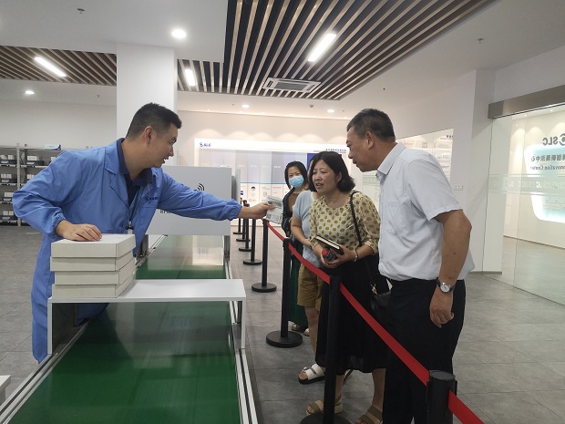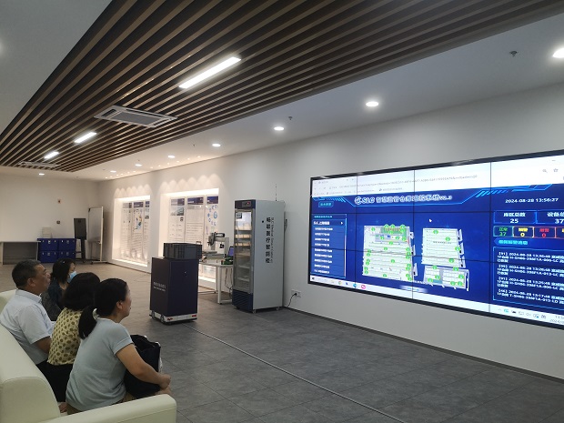 调研过程中,教师们参观了畅联物流的智能化仓储配送展厅,了解了企业在智能化、数字化方面的创新实践。特别是在“医疗物联网”实验室,老师们通过现场演示,近距离体验了UDI唯一码追溯管理系统、RFID智能拣选车、RFID盘点机器人等智能化设施设备,并且认识了ABB机械手臂分拣、AGV顶载机器人移动货架、亮灯订单拣选技术、RF红外扫描系统、GPS高值设备定位设备、RFID医疗智能柜以及自动贴标流水线等数项科技创新应用。老师们深刻感受到了畅联物流在科技创新方面的快速发展,不禁被畅联物流精进业务、勇于创新的优良品质所震撼。(图4-7)