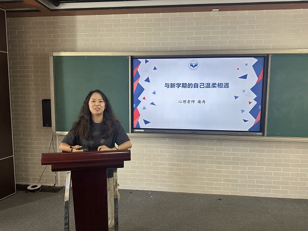 首先,由我校心理教师谢冉为同学们带来“与新学期的自己温柔相遇”主题讲座,告诉同学们:新学期像一张空白的纸,别急着用“必须完美”的笔把它涂得紧绷,只要踏踏实实的走,就算把节奏放慢一点也没关系。同时,谢冉老师还为同学们提供了高效学习的学习方法,帮助同学们提高学习效率,有效抚平了同学们面对开学的焦虑情绪。