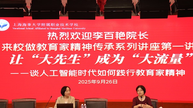 9月26日,上海海事大学附属职业技术学校有幸邀请到上海市教育功臣、特级校长、特级教师、正高级教师、浦东新区教育发展研究院院长李百艳博士来我校围绕《让“大先生”成为“大流量”:谈人工智能时代如何践行教育家精神》主题做教育家精神传承系列讲座第一讲,全校教师参会。