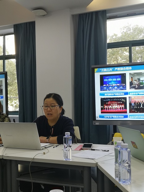 会议伊始,海大职校商贸物流专业群负责人黄裕程作物流服务与管理专业中期建设汇报。汇报聚焦“产教融合,提质育人”核心,详细阐述了专业以 “三融三共”为载体,融入行业产业新发展、职业岗位新标准、产业一线新观点的建设理念。从共建人才培养方案、共研课程体系、共育技能人才三个维度,展示了专业在模块化课程构建、自贸区特色教材开发、育才提质、锻造团队,产教融合反哺等方面的阶段性成果。超星公司的贺闪闪通过现场演示,向与会人员展示了海大职校物流优质专业建设平台的功能与应用,为教学资源共享、校企互动交流提供了技术支撑。